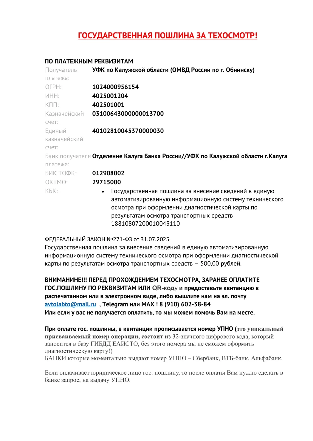 С 1 сентября 2025 года вступает в силу новый порядок прохождения технического осмотра транспортных средств. Согласно Федеральному закону № 271-ФЗ от 31.07.2025, владельцы автомобилей обязаны уплачивать государственную пошлину за внесение данных в ЕАИСТО.